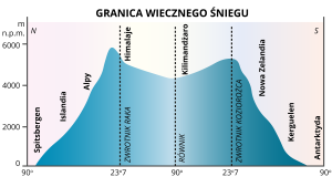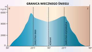 Przebieg linii wieloletniego śniegu wraz z łańcuchami górskimi