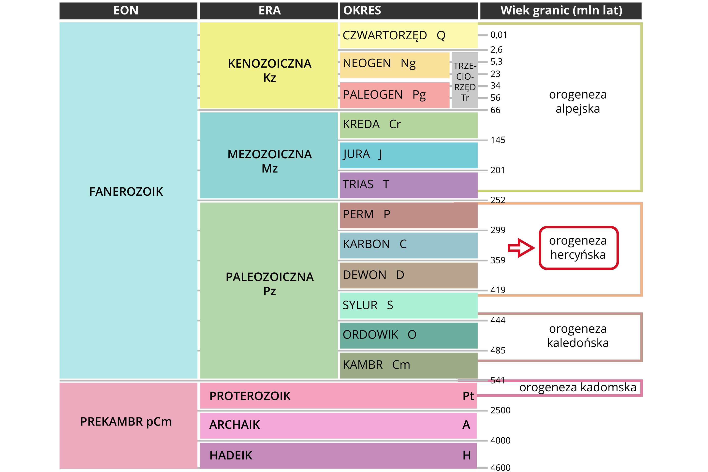 Orogeneza hercyńska trwała w paleozoiku dokładniej między późnym sylurem a permem. Górotwory z tej orogenezy nazywane są hercynidami lub waryscydami.