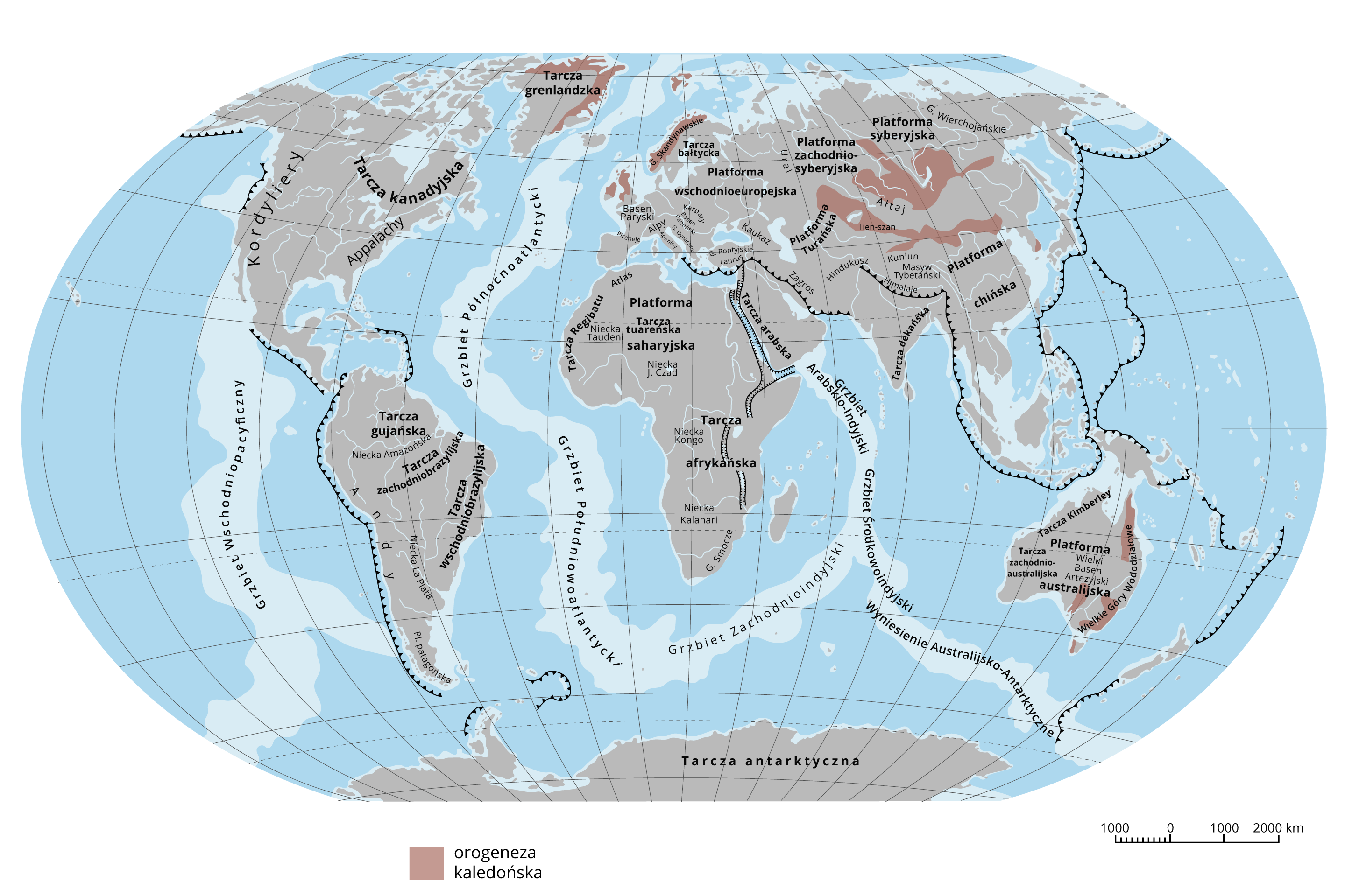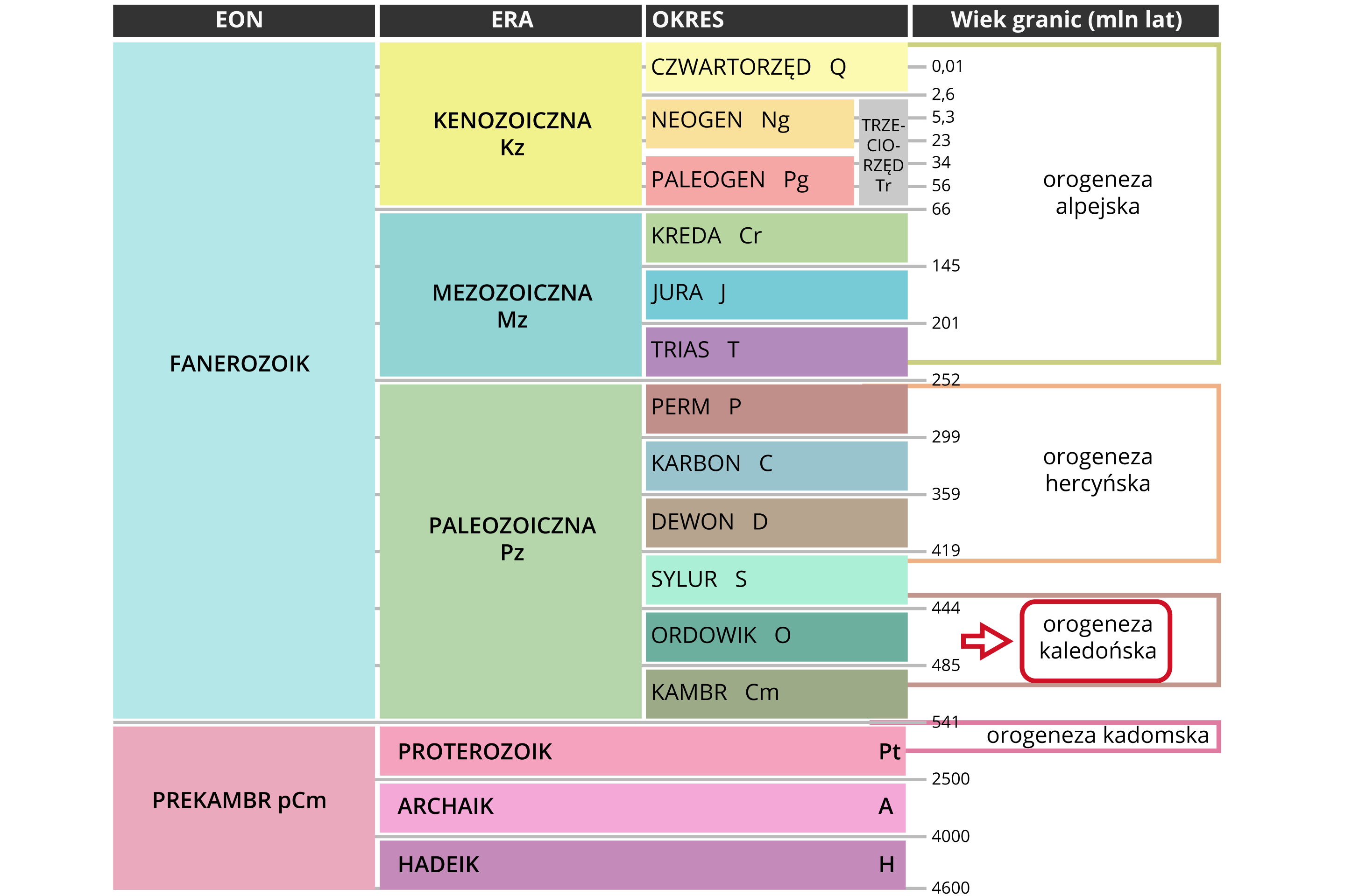 Orogeneza kaledońska trwała od późnego kambru po wczesny dewon. Górotwory powstałe podczas tej orogenzy nazywane są kaleonidami.