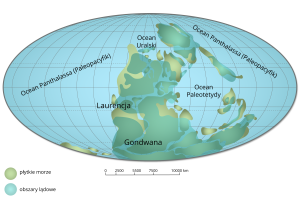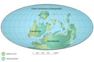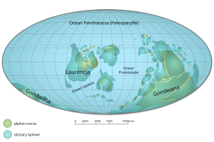 Następnie w kambrze na Ziemi istniało już kilka kontynentów. Największym z nich była Gondwana znajdująca się w rejonach bieguna południowego. Innymi wielkimi kontynentami w kambrze była Laurencja i Baltika.