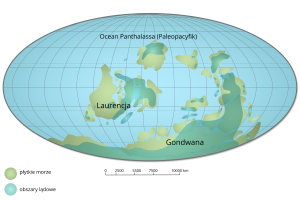 W Karbonie zaczęła formować się Pangea- super kontynent. W tym czasie miały miejsce też wydarzenia powiązane z orogenezą hercyńską.